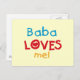 Baba me ama camisetas, tarjetas, pegatinas, bolsas de pantalones y mucho más con colorido rojo, amarillo y azul texto y diseño cardíaco. ¡Esta Baba me ama ropa y artículos de regalo harán sonreír a baba!