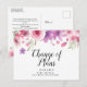 Una bonita tarjeta de baby shower pospuesta con flores de acuarela y letra script se puede personalizar con su información actualizada. La parte trasera tiene detalles adicionales, con su dirección de devolución y espacio para la dirección de su destinatario. Diseñado por Thisisnotme©