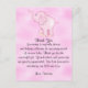 ¡Es una niña! Tarjeta de agradecimiento personalizable para baby shower de bebé niño adorable. Solo complete los detalles y estará listo para enviar. Fondo rosa para bebé, un elefante bebé adorable con su trompa levantada. Sentimiento de agradecimiento que dice: "Gracias por venir a mi baby shower y ayudar a celebrar la próxima llegada de nuestro nuevo bebé. Gracias por el regalo maravilloso. Su amabilidad y generosidad son muy apreciadas. Esperamos con ansias presentar a nuestro pequeño pronto". Todos nuestros productos pueden ser diseñados a medida para satisfacer sus necesidades sin cargo adicional. Simplemente contáctenos a través de nuestra tienda. Productos coordinados disponibles: ¡Solo pregúntenos!