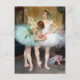 Postal de arte fino del artista francés Pierre Carrier-Belleuse (1851-1932) titulada, Backstage at the Ballet (1890). Belleuse era conocido por sus escenas y pasteles de ballet. La postal muestra a dos bailarinas preparándose para el escenario, uno en un tutu verde y el otro en un tutu blanco, con cintas alrededor de la cintura.