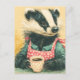 IA generó arte de un adorable tejedor de badger con un delantal polka rojo sosteniendo una taza de café