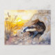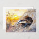 pintura acuarela de un insignia que emerge de su madriguera al amanecer, con una cálida luz solar que arroja un resplandor dorado. Esta obra de arte da vida a la tranquilidad de la madrugada y a la vida silvestre con delicadas pinceladas.