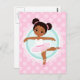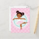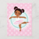 Una bailarina afroamericana en un tutu rosado, interpretando un arabesco. Puntos de polka rosa y acento verde menta.