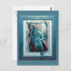 Una obra de arte muestra a una mujer semi-abstracta con un trapo/velo en tonos azules, blancos y rosas.