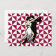 Gráfica apasionada al estilo vintage de bailarinas de tango sobre fondo geométrico audaz marrón / borgoña y blanco.