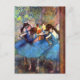 Una magnífica postal impresionista de arte con los pastel, bailarinas en azul (1895) del artista francés Edgar Degas (1834-1917), una figurativa de cuatro bailarinas de ballet en las alas con tutus azul, y el escenario como fondo.