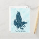 Una simple silueta azul de un cuervo vivo (Corvus corax) de estilo nórdico-celta, superpuesta a una imagen de fondo nevada. Personalizar agregando su propio texto.