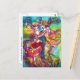 Colorido, elegante y vibrante diseño de arte fino con bailarinas románticas de carnaval : figuras de baile caprichosas, hermosa mujer rubia con disfraces espumosos de plumas está bailando con un joven Harlequin. Pintura acuarela de color rosa brillante, fucsia, verde, rojo, azul, amarillo , chispas doradas inspiradas en la Comedia del Arte (Commedia dell'arte) y el Carnaval de Venecia. También es un hermoso regalo para navidades, vacaciones, ocasiones especiales, fiestas de cumpleaños, baile de máscaras de Nochevieja, El día de San Valentín.