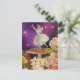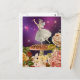 Un poco de fantasía. Cielo morado con una gran seta en el centro. Un hada con un vestido blanco y alas bailando sobre el hongo. Grandes flores por todas partes