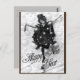 Esta postal contiene una foto vintage de una bailarina en una botella de champán. Está rodeada de burbujas y debajo hay un saludo de año nuevo. Disfruta de tu nueva Ballerina Vintage en una botella Feliz Año Nuevo!