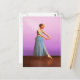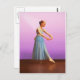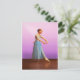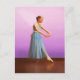 Una bailarina joven demur toca una elegante pose en un fondo que va del rosa al morado. Su cabeza está ligeramente inclinada y hay flores en su pelo. Ella lleva puesto un vestido azul. Personalizar agregando su propio título a la imagen.