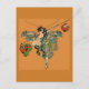 un hada de estilo Art Nouveau vintage con zapatos de ballet, un hermoso vestido y alas floridas en azul y verde, y brazos delicados y elegantes sosteniendo un largo palo con farolillos de papel colgados de los extremos. pasarelas elegantes y elegantes pintan de un hada de una dama de bonito en un movimiento de baile con linternas y con antecedentes naranjas. arte vintage en varios colores.