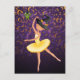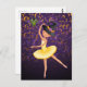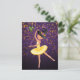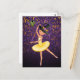 Esta bonita postal de Halloween con la temática de un ballet presenta una fabulosa luna morada y naranja y un fondo de estrellas con una bailarina adorable usando un gorra de brujas con un bate lindo. La parte trasera de la tarjeta contiene un saludo personalizado de Halloween que puede ser personalizado!