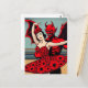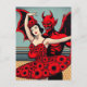 Postal Ballet malvado con una mujer vestida de rojo flora