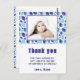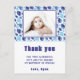 Cute Balloon Blue Kid's Photo Birthday Gracias Postcard. Diseño lindo con patrón de globo azul. Personaliza la postal con tu foto, nombre y texto.