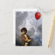 Esta imagen de ensueño representa a un muchacho triste que sostiene un globo rojo contra un fondo de nubes. Esta original obra de arte digital surrealista fue creada por el artista Kenneth Rougeau.