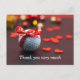 Balón de golf con cinta roja con corazones rojos de amor Tarjeta de agradecimiento para boda