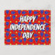 Un gráfico muy divertido de pickleball rojo, blanco y azul para un torneo de pickleball del Día de la Independencia, o fiesta de pickleball del 4 de julio. Palas de bola de picnic azul con estrellas blancas sobre un fondo rojo salpicadas de albóndigas amarillas. Colorida tarjeta postal del día de la independencia del pickleball para tu mamá, papá, tío, tía, hermano, hermana, vecina, abuelo, abuela, esposo, esposa, amiga o colega del trabajo que no deja de hablar de pickleball.