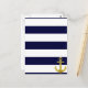 Diseño único y elegante con franjas náuticas azules y un brillante ancla dorada.