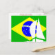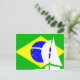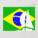 Tarjeta postal brasileña con bandera brasileña. Silueta de yate blanco y postal náutica Brasil con bandera brasileña.