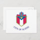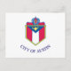 Postal con la bandera de Austin, Texas. Una bandera blanca con el escudo de armas de la ciudad en el centro