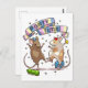 Ratones de dibujos animados divertidos en una postal. Utilice "Personalizar esta plantilla" para modificar el texto "¡FIESTA TIEMPO!" y crear un mensaje único y personalizado. Una tarjeta que presenta a dos ratones lindos con sombreros de fiesta, bailando felices mientras caen confeti y una cinta alrededor de ellos, con globos esparcidos en el suelo.