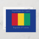 Bandera de Guinea en un fondo azul oscuro con la República de Guinea en inglés y francés