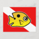 Esta es nuestra adorable Scubadorable Threespot Damselfish frente a una bandera de buceo. Estos peces lindos viven en los arrecifes de coral del sur de Florida y las Bahamas. Grandes regalos para buceadores y buceadores.
