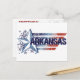 Estados Unidos es un gran país y Arkansas es un gran estado. Comparte tu orgullo americano con una bandera vintage de Arkansas con una postal de Phete First. Una gran estrella azul dispara una franja patriótica de rojo y azul que parece una vieja bandera; ‘Arkansas’ está escrita en la marina con un efecto anticuado mientras que una multitud de estrellas más pequeñas la rodean. Este diseño angustiado tiene un aire auténtico y granulado, y su interesante diagonal lo hace atrevido y contemporáneo. El reverso dice ‘Saludos’ y puedes personalizar tu propio mensaje personal. No olvide hacer corresponder a los pegatinas de franqueo y sobre.