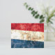 Este artículo tiene una bandera de estilo angustiado de los Países Bajos en un ligero ángulo. La bandera de los Países Bajos es una tricolor horizontal de rojo, blanco y azul. Se remonta a la época de Charlemagne. Desde 1572 se utilizan variantes de la bandera y en 1937 se formalizó oficialmente la bandera nacional de los Países Bajos y del Reino de los Países Bajos. Es la bandera tricolor más antigua. Las festividades horizontales son bandas iguales, de arriba a abajo, rojas, blancas y azules.