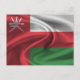 Tarjeta postal con la bandera de Omán en diseño de tela ondulada. Este diseño presenta los colores y el diseño de la bandera de Omán con un hermoso efecto de textura de material ondulante. Este diseño de bandera es una excelente manera de mostrar que estás orgulloso de ser de Omán.