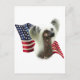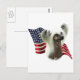 ¡USA! ¡Estados Unidos! Grita tu orgullo con esta impresionante bandera Patriótico de fondo con esta raza de perro AKC de raza china Crested en la primera línea. Muestra tu orgullo con este diseño en una camiseta, taza, cadena de claves, tote, imán, botón o tarjetas de felicitación.