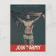 Estilo retro, rojo blanco y azul poster de reclutamiento del ejército de los Estados Unidos con un oficial de los Estados Unidos portando estrellas y rayas ondeando la bandera sobre su cabeza