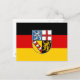 Postal con bandera del Sarre; diseño con tricolor horizontal de negro, rojo y amarillo (dorado), con el escudo de armas del estado en el centro
