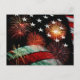 Postal Bandera estadounidense y fuegos artificiales