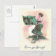 Envíe a sus seres queridos un poco de verde este año. Esta imagen vintage del Día de San Patricio muestra a una mujer con una bandera irlandesa.