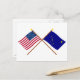 Las suaves banderas onduladas de Estados Unidos y tu "otro" lugar favorito en los postes cruzados son una excelente manera de mostrar tus afectos o afiliaciones. Ya sea su hogar actual o ancestral, un lugar que ha visitado o que le gustaría visitar, o sólo porque le gusta esa bandera, ¡esta postal es para usted!