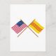 Las suaves banderas onduladas de Estados Unidos y tu "otro" lugar favorito en los postes cruzados son una excelente manera de mostrar tus afectos o afiliaciones. Ya sea su hogar actual o ancestral, un lugar que ha visitado o que le gustaría visitar, o sólo porque le gusta esa bandera, ¡esta postal es para usted!
