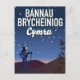 Cartel de viaje de Bannau Brycheiniog Cymru de un excursionista en una montaña.