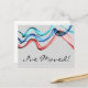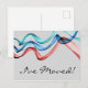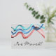 Banderas de cinta de opciones en onda verde, azul y roja a través de un fondo gris suave, con su invitación en la parte inferior de esta postal de cambio de dirección. Hermoso, simple y minimalista.