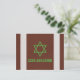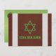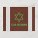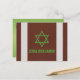 Tarjeta de agradecimiento personalizada para Bar Mitzvah de fútbol americano marrón, verde, negro y blanco. El diseño de esta tarjeta de agradecimiento para Bar Mitzvah de fútbol americano presenta un fondo marrón con textura de cuero que se asemeja al cuero de un balón de fútbol americano en la parte frontal. También hay dos franjas blancas verticales similares a las que se encuentran en un balón de fútbol americano. Este fondo de balón de fútbol americano marrón y blanco se combina con una fuente de estilo deportivo y una Estrella de David judía en verde. Esta tarjeta plana de agradecimiento para Bar Mitzvah de fútbol americano sería ideal para un Bar Mitzvah con tema de la NFL o Super Bowl. Esta tarjeta de agradecimiento para Bar Mitzvah de deportes de fútbol americano podría funcionar para cualquier temporada y es una excelente opción para un niño que ama el fútbol americano.