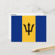 Bandera de Barbados. La bandera nacional de Barbados fue oficialmente adoptada el 30 de noviembre de 1966, el primer Día de la Independencia de la isla. Se compone de una tribanda de dos bandas de ultramarina, que se dice que están a favor del océano, separadas por una banda intermedia dorada que representa la arena de la isla. Una cabeza de tridente negra (comúnmente llamada el "tridente roto"), se centra dentro de la banda dorada. El símbolo del tridente fue sacado de la insignia colonial de Barbados, donde se muestra el tridente con Britannia sosteniéndolo. La parte inferior rota simboliza una ruptura simbólica de su condición de colonia. Los tres puntos del tridente representan los tres principios de la democracia - 1) gobierno de, 2) a favor, y 3) del pueblo.