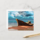 Postal Barca Desierta en una Playa de Arena Abandonada