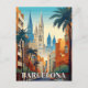 Lleva tu pasión por viajar con esta elegante postal de viajes retro de Barcelona, España.