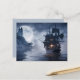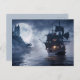 Buque pirata navegando por un castillo con luna llena en una noche nublada