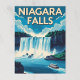 Un clásico cartel de viaje vintage captura las poderosas cataratas del Niágara, con dos barcos turísticos navegando por las aguas turbulentas debajo, todo bajo un dinámico cielo azul con nubes suaves. "CATARATAS DEL NIÁGARA" se muestra de manera prominente en la parte superior.