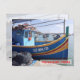 Colorido código postal de recuerdo de los hermosos barcos pesqueros malteses en el puerto de Marsaxlokk. Derechos de imagen de Bridget Edmonds.