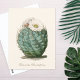 A fine art botanical postcard from Curtis Botanical Magazine showcases a detailed illustration of a Barrel Cactus (Echinocactus hexaedrophorus) crowned with a blooming white flower. Capturing the moment when the “Barrel” reveals its stunning, silken bloom, this rare sight perfectly embodies the resilient beauty of the arid wilderness.