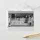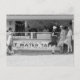 Esta imagen es una ampliación de una parte de la fotografía vintage original de 1928, centrada en la actividad en el mostrador delantero. El cartel dice "LA CAPA DE AGUA DE SAL DE ANDY VÉASE HECHA".