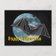 Postal Bat de papel de origami con luna azul/amarillo/mar